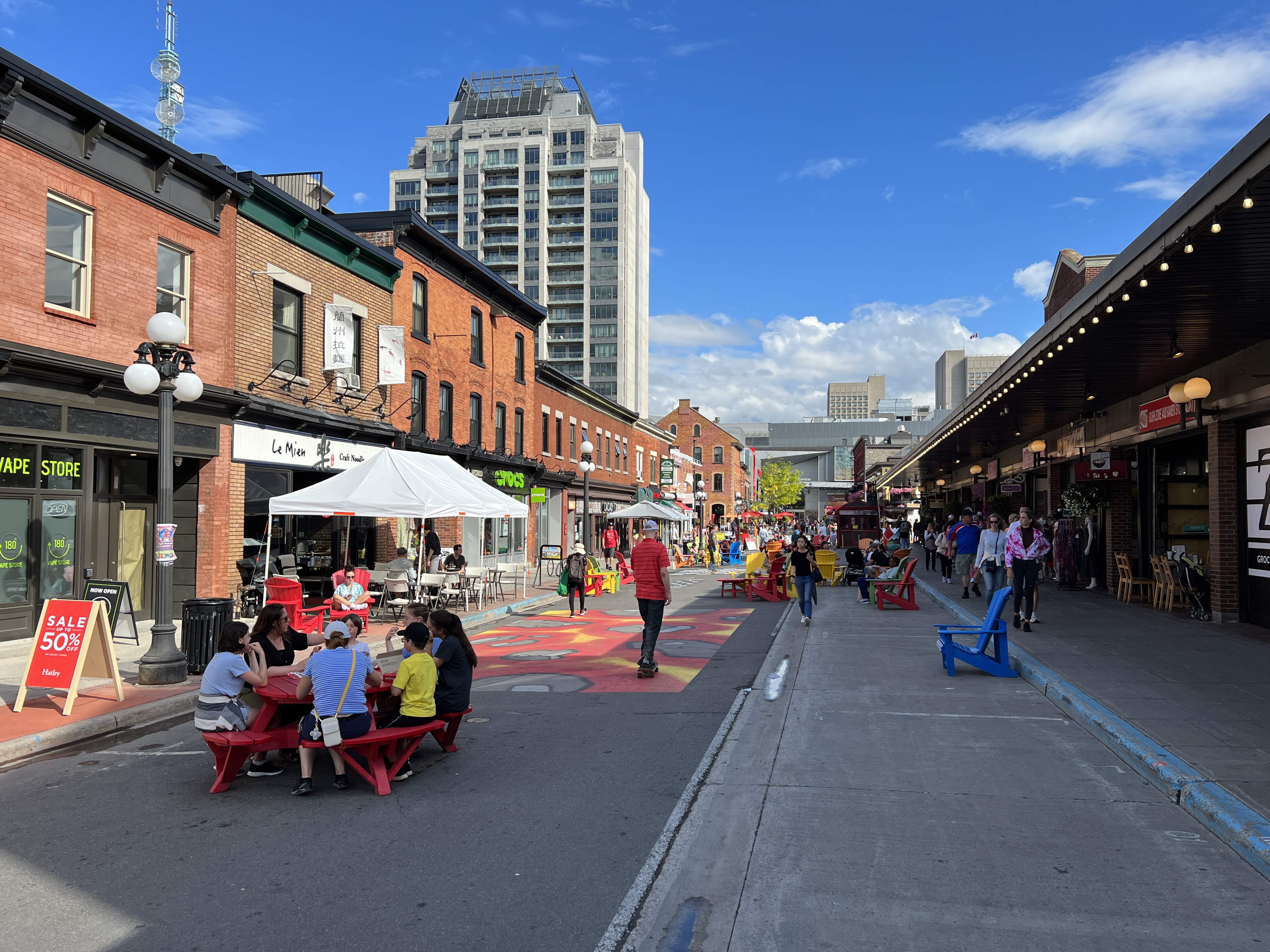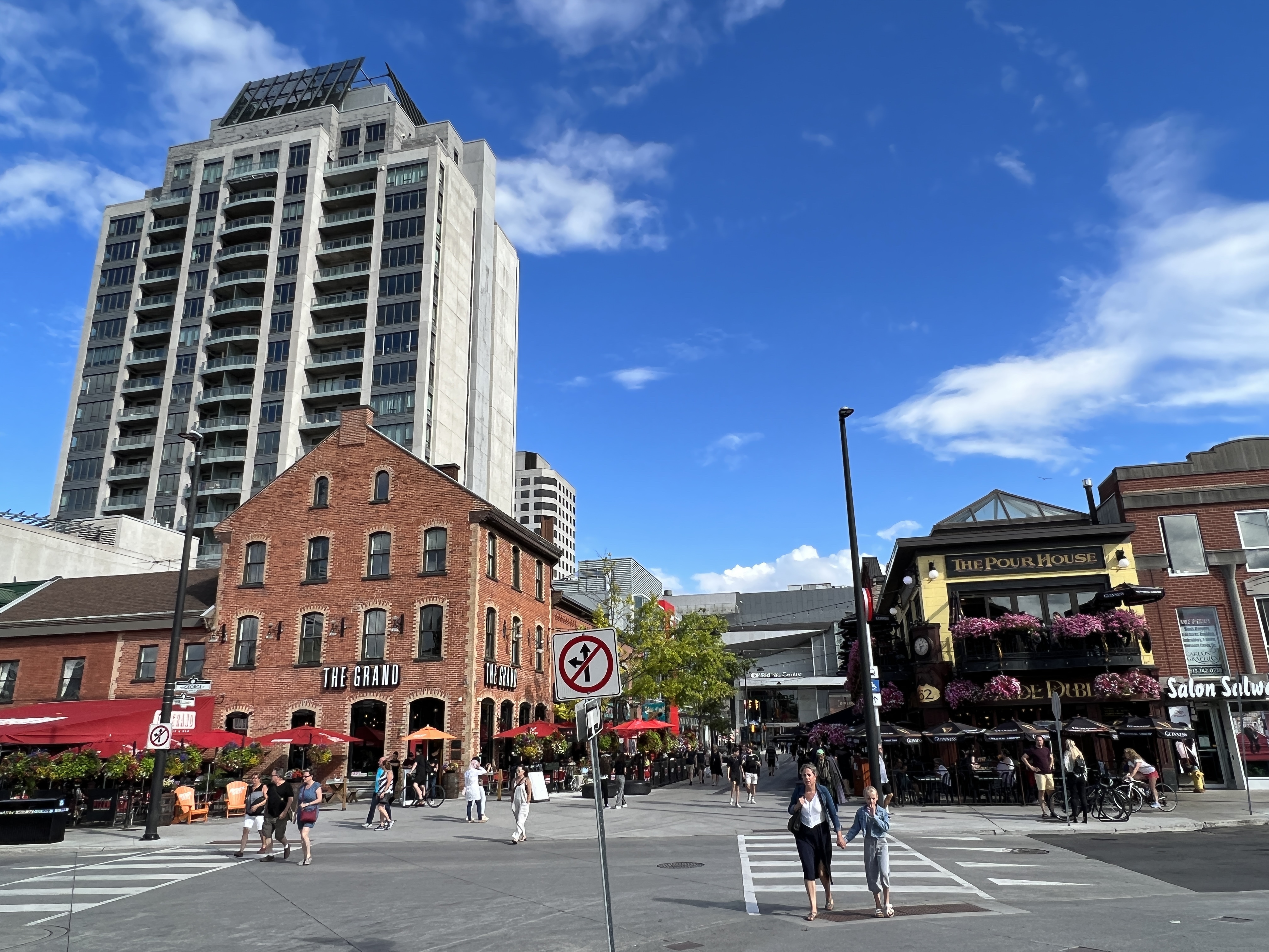 We slaan Clarence street in en lopen het oudste deel van de stad in. Het gebied rondom de Byward Market. Ontzettend leuk gebied met veel winkeltjes en restaurantjes met terrasjes.