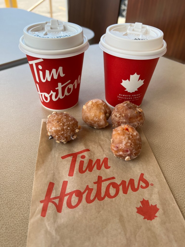 We rijden over de 401 langs Lake Ontario naar Toronto. Bij Cobourg wisselen we elkaar af met rijden. Bij de Tim Hortons drinken we daar koffie met TimBiebs. De naam van popzanger Justin Bieber is hier aangegeven. Een samenwerking tussen Tim Hortons en Justin Bieber. Ze zijn best lekker.