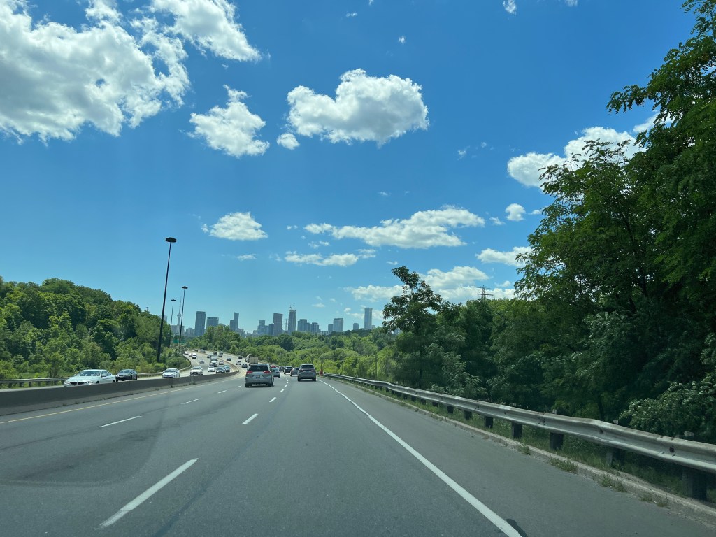 Hoe dichter bij Toronto hoe drukker het al wordt op de weg. We kunnen wel steeds goed door rijden.