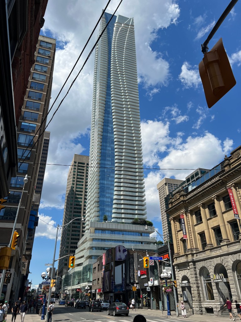 We lopen via de drukke en levendige Yonge Street af richting Downtown Toronto. De hoge wolkenkrabbers zijn indrukwekkend hier.