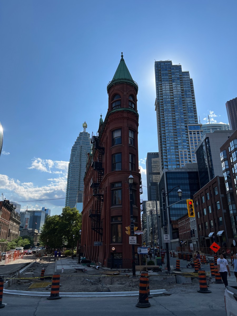 Bij Wellingstreet lopen we naar het Gooderham Building. Een van de meest gefotografeerde gebouwen van Toronto. Het wigvormig gebouw is door de machtige familie Gooderham in 1892 gebouwd.