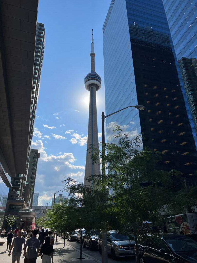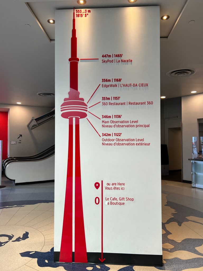 De volgende stop is de CN Tower. Deze televisiemast is 553 meter hoog. De bouw is in 1976 voltooid.