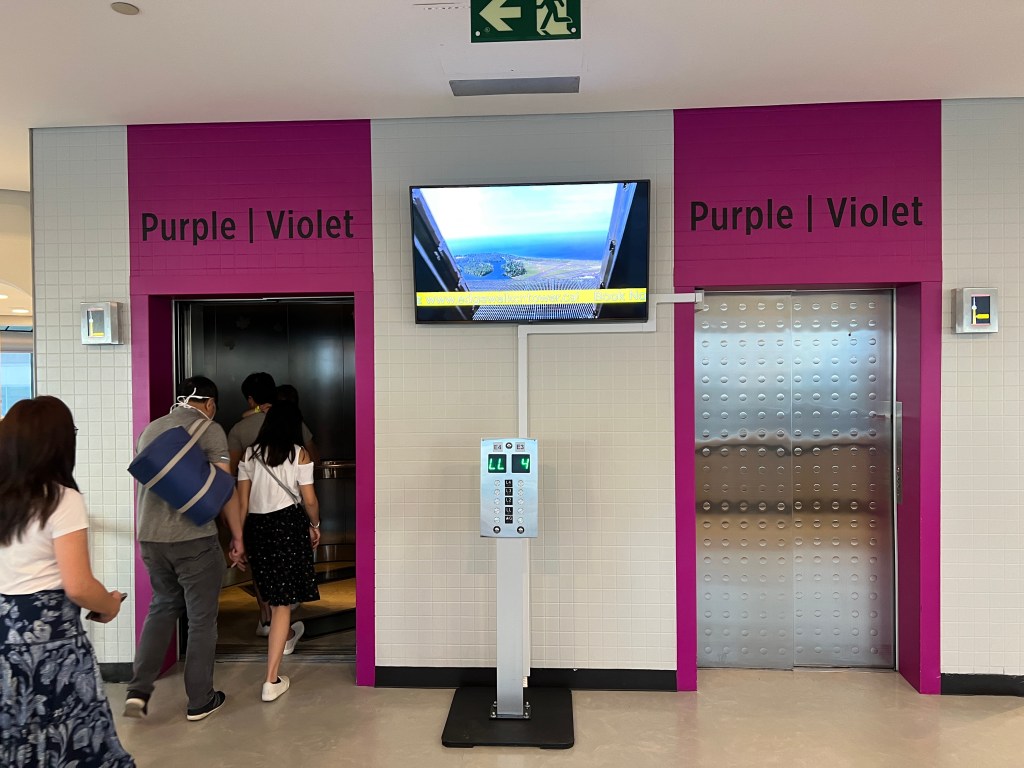 We betalen de flinke entree en kunnen om 18.30 uur naar binnen. Eerst langs de beveiliging en dan wordt er nog een foto van ons gemaakt, die we overigens niet kopen, en gaan dan met een man of 15 de lift in naar boven.