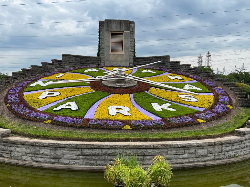 We stoppen ook even bij de Floral clock en later bij een punt waar een mooi uitzicht is op de Niagara River en de brug naar Amerika.