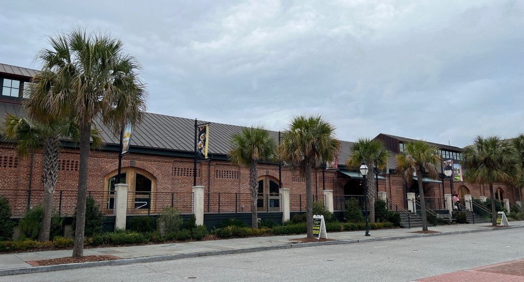 Het is ongeveer 15 minuten rijden vanaf Mount Pleasant naar het centrum van Charleston. We rijden over een hoge brug de Ashley rivier over en rijden zo het centrum in. We parkeren bij het Visitor Center. We lopen nog even het Visitor Center in. Het ziet er prachtig uit. Het is gelegen in een voormalig warenhuis.