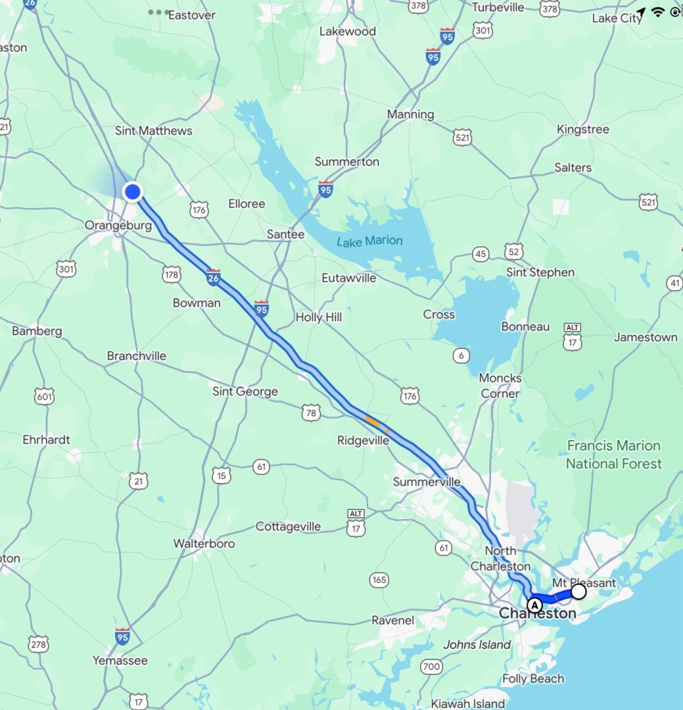 We rijden de stad uit en gaan al een eind op weg naar de stad Augusta. We stoppen in de stad Orangeburg waar we een hotel boeken, een Hampton Inn. We komen om 17.30 uur aan. We checken in en gaan daarna nog even naar de nabijgelegen Sonic. Dit is een drive thru restaurant.