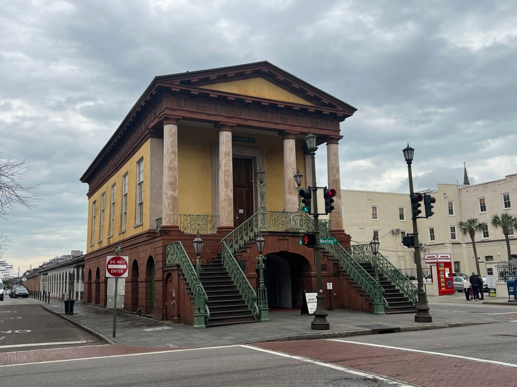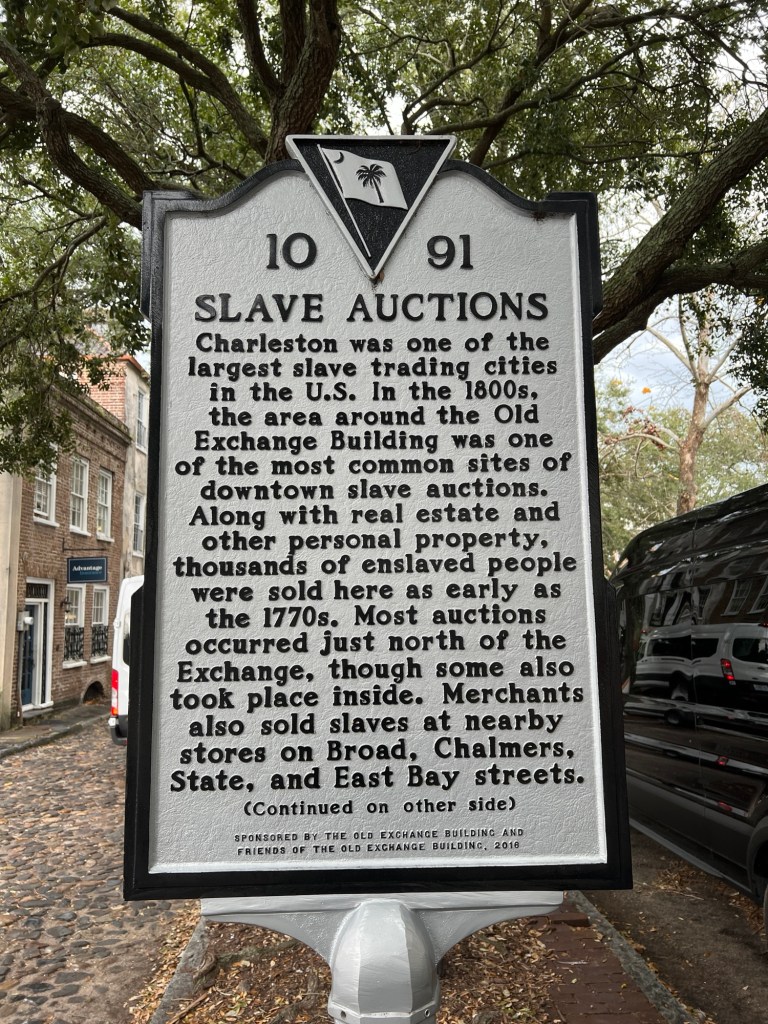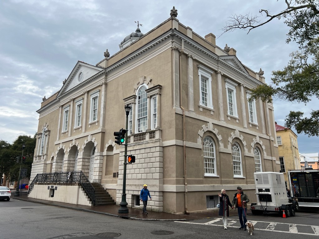 Vervolgens lopen we East bay street in. Eerst komen we langs het Old Exchange Building. Bij dit gebouw werden vroeger de slaven die in Charleston aankwamen verhandeld.