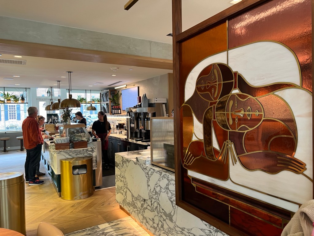 We nemen nog even een cappuccino bij een leuke kleine koffietentje, Le Macaron French Pastries.