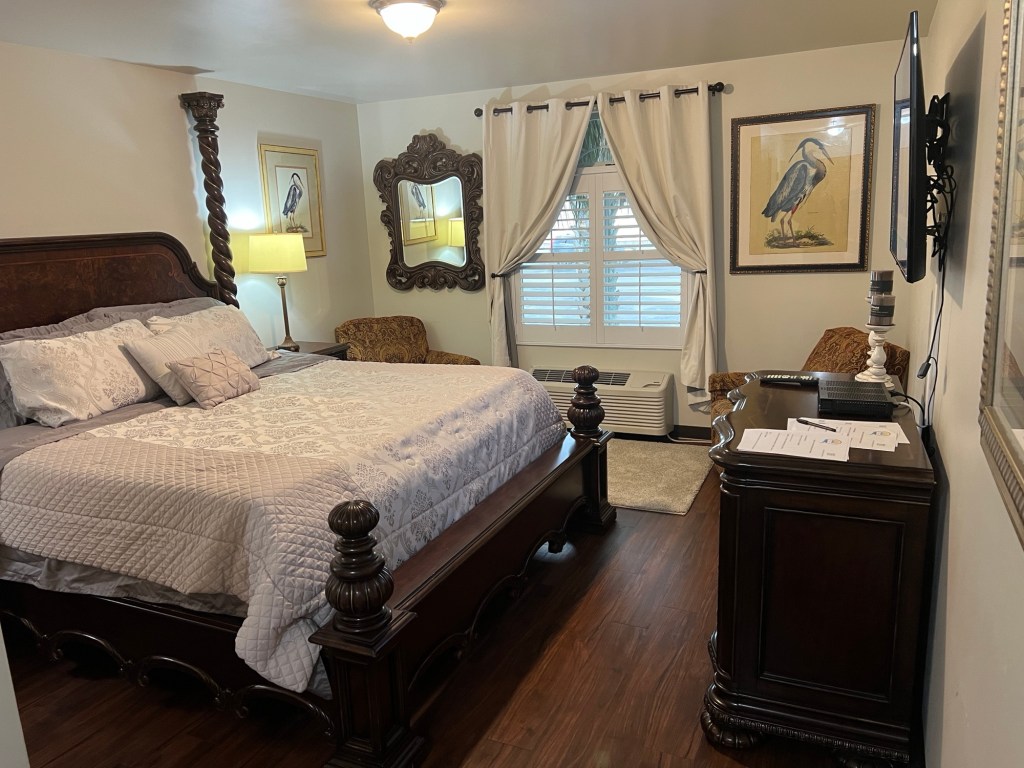Bij Ocala ligt ook het grootste zand-pijnbos ter wereld van maar liefst 148.000 ha. Het Ocala National Forest. We wilden daar eigenlijk naar Silver Springs State Park om een wandeling te doen, maar het regent. We eten nog even bij de IHop in het drukke Ocala en besluiten, omdat het blijft miezeren, door te rijden naar Crystal River. We komen daar om 16.00 uur aan en checken in bij Beautiful Beginnings at Bayside. Een hotel annex B&B. We worden welkom gegeten door gastvrouw Rita. We kunnen kiezen uit 2 kamers. Een modern ingerichte kamer of een erg klassieke kamer. Ze is verast als we kiezen voor de klassieke kamer. Ze verteld dat de meeste gasten uit Nederland, Duitsland zouden kiezen voor de modern ingerichte kamer. Wij hebben onze vakantie al genoeg moderne hotelkamers gezien. Deze kamer heeft wel wat. Dus kiezen we hiervoor. Zie foto’s hieronder.