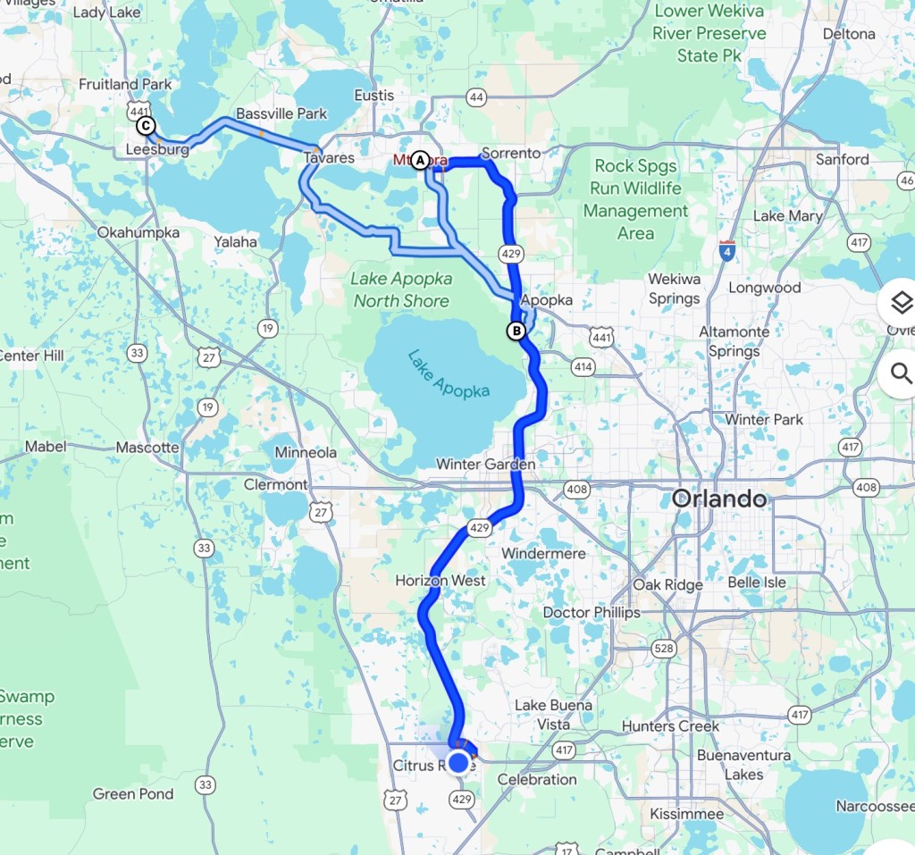Vanaf Mount Dora is het nog 45 minuten rijden naar ons gehuurde woning. We doen daarvoor nog wel boodschappen bij de Walmart. Wat een drukte daarbinnen. Echt milieuvriendelijk zijn ze daar niet. We krijgen bijna 10 plastic tassen met boodschappen mee.
