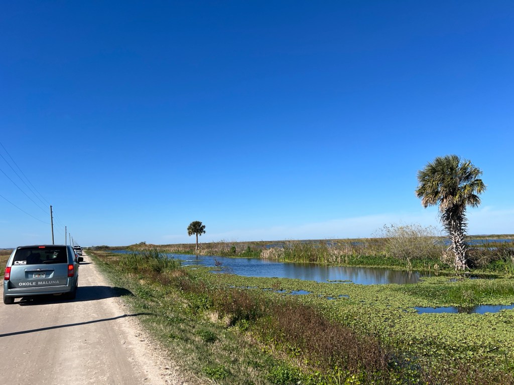 Voordat we daar heen gaan rijden we naar Lake Apopka. We gaan de Lake Apopka wilddrive rijden. Hier kunnen we met de auto een 11 mile lange route rijden door het natuurgebied van Lake Apopka. We komen om 11.30 uur aan. Het is al druk. Bij de ingang wacht een vrouw ons op. Ze vertelt wat we kunnen verwachten en krijgen een kaart van het gebied met de route. Je mag hier niet harder rijden dan 10 mile/uur. Dat hoeft ook niet want de weg is niet van de beste kwaliteit. Je kunt ook een audiotour doen. Met een scancode kun je de tour met de telefoon oproepen.