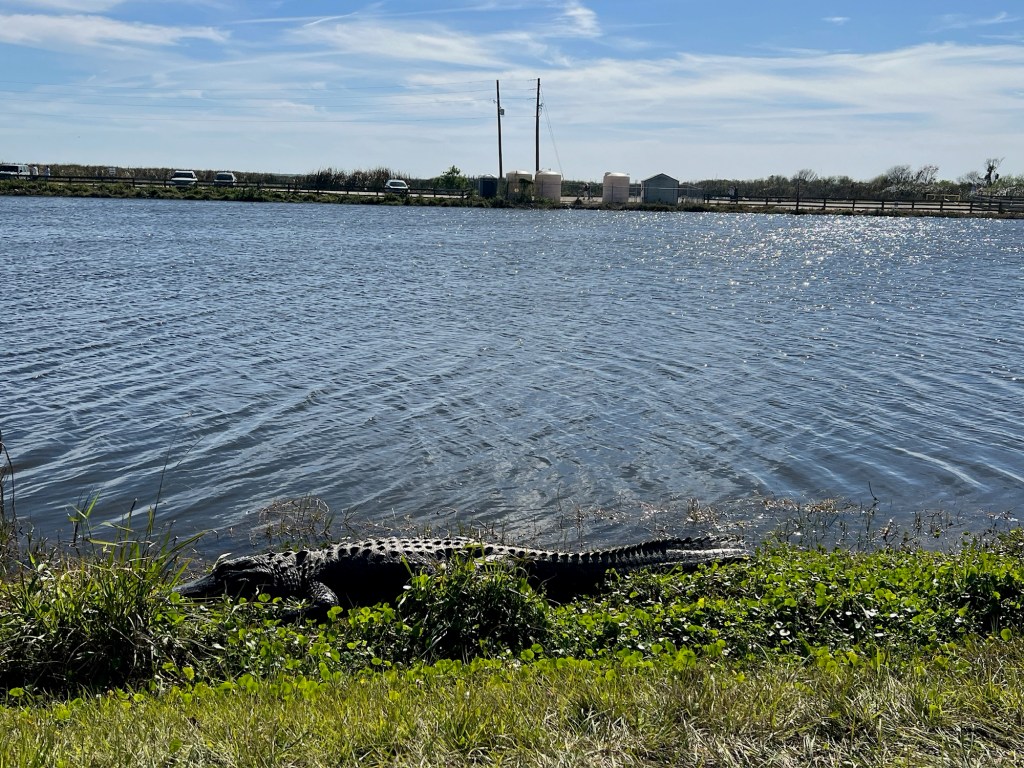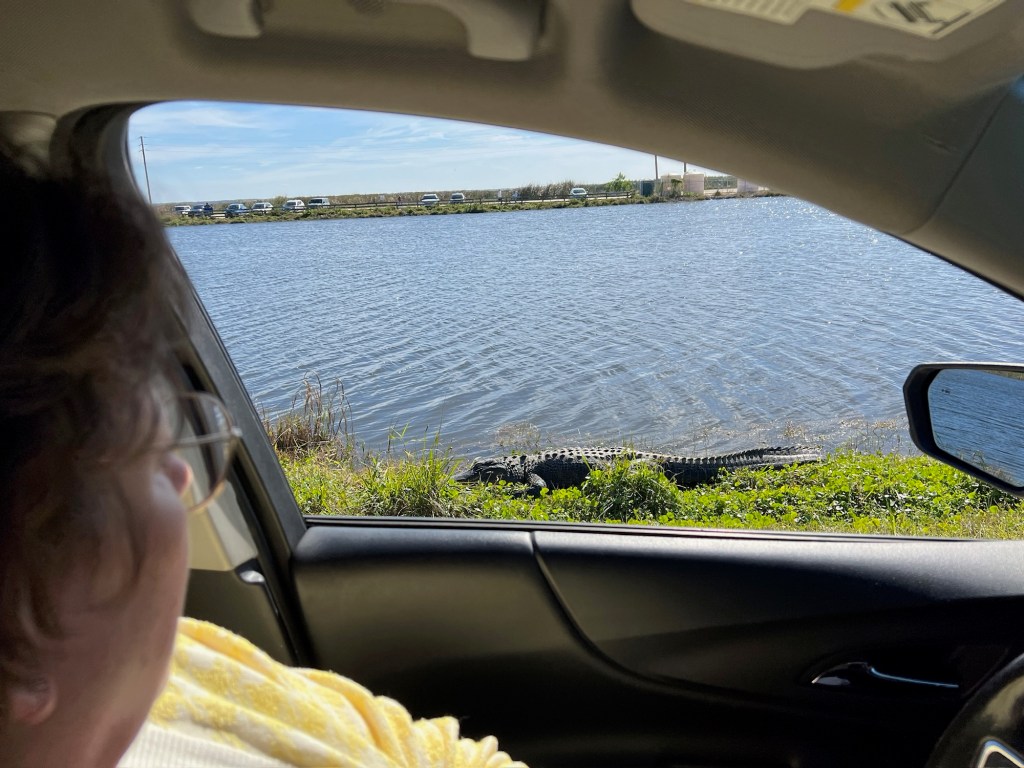We komen nog meer flinke alligators tegen. Staan er veel auto’s stil dan weet je dat er wat te zien is. We hebben er uiteindelijk wel een stuk of 20 zien liggen.