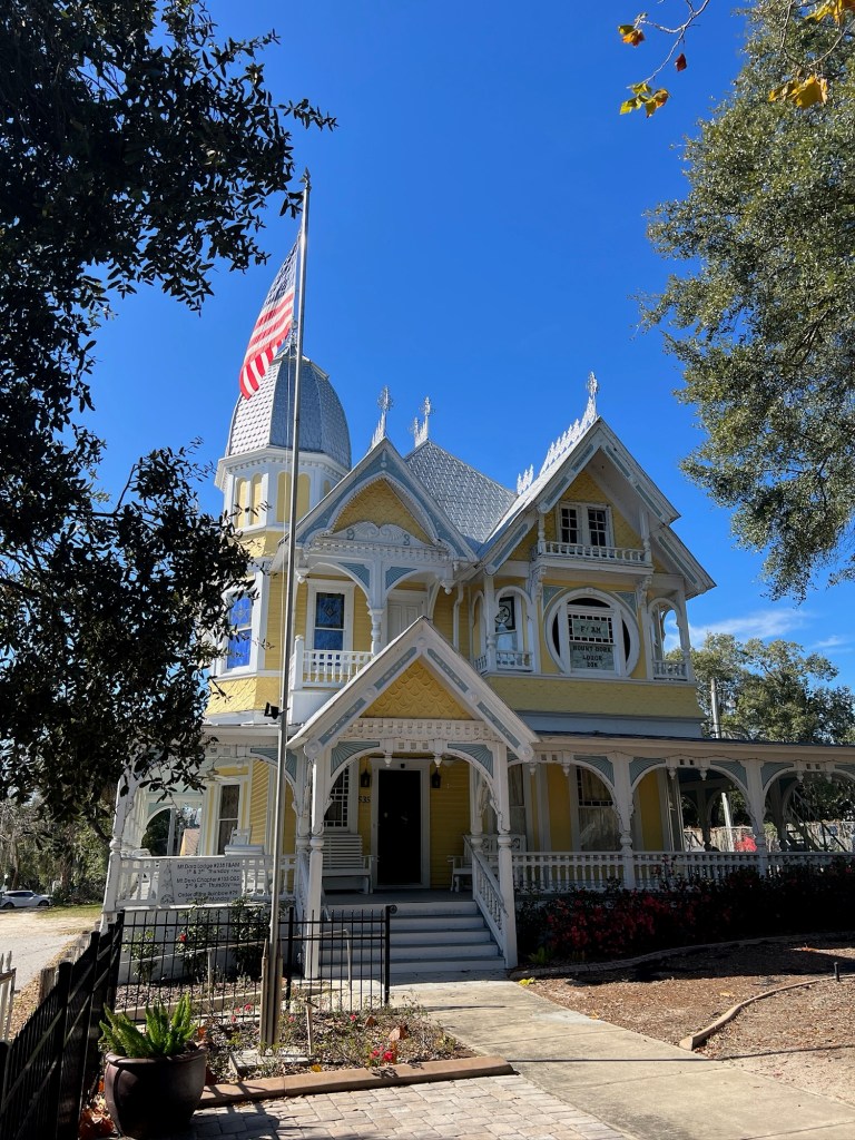 13.15 hadden we onze 11 mile route gedaan en rijden naar het stadje Mount Dora. Rond dit stadje zien we ook enkele citrusboomgaarden. We rijden naar het oude historisch centrum. Er staan in dit stadje veel Victoriaanse woningen. De stad heeft zijn naam te danken aan de 56 meter hoge heuvel waar het op ligt. We lopen door Donnely street. Hier ligt ook het mooie oude Donnely House aan.