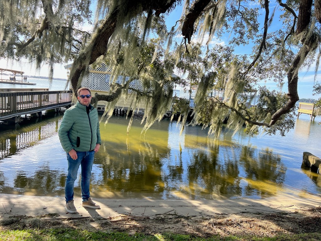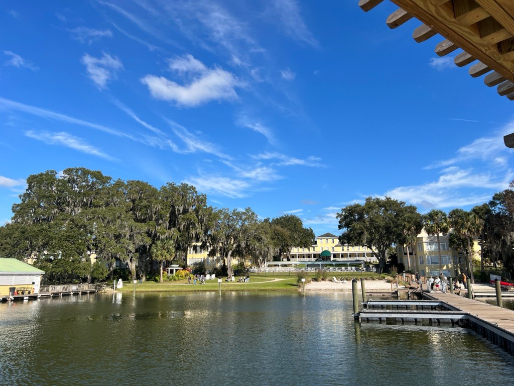Je merkt dat het zondag is. Het is druk. We lunchen bij een Italiaans restaurant. Na de lunch lopen we nog naar het meer. Aan dit meer ligt een heel mooi hotel, Lakeside Inn. In de tuin staan mooie oude bomen begroeit met Spaans mos.