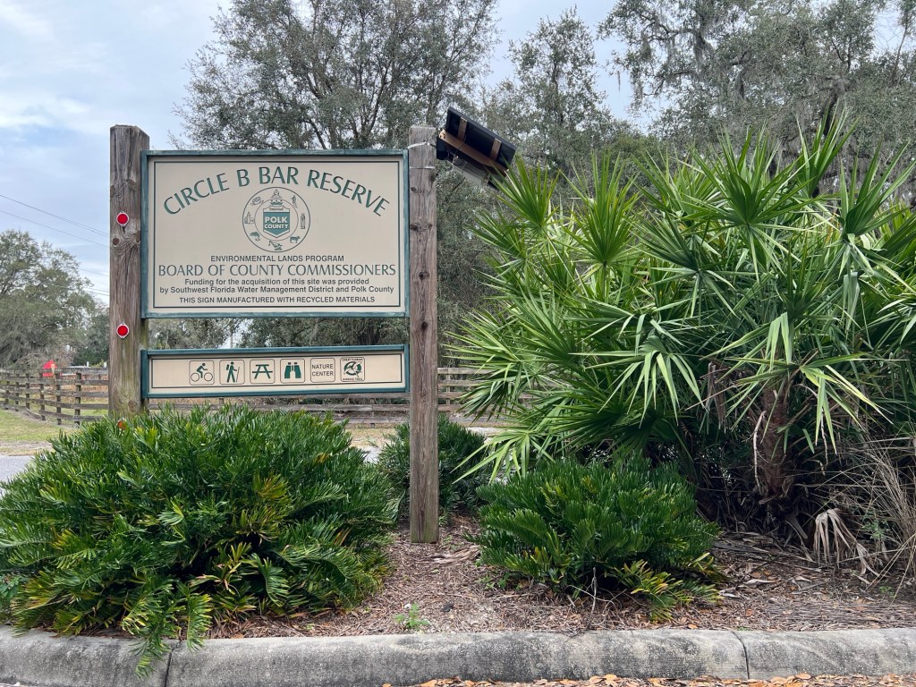 Vandaag gaan we naar Circle B Bar Reserve. Een mooi natuurgebied op 40 minuten rijden. Het natuurgebied is ruim 500 ha groot. Het ligt aan Lake Hancock. In 1949 kochten boeren deze grond en verbouwden er o.a. citrusvruchten. Daarnaast hielden ze ook vee. Ze noemden het de Circle B Bar Ranch. In 2000 is het omgezet in natuur.