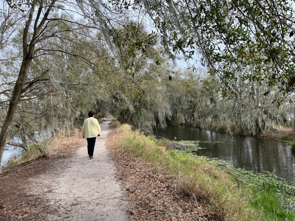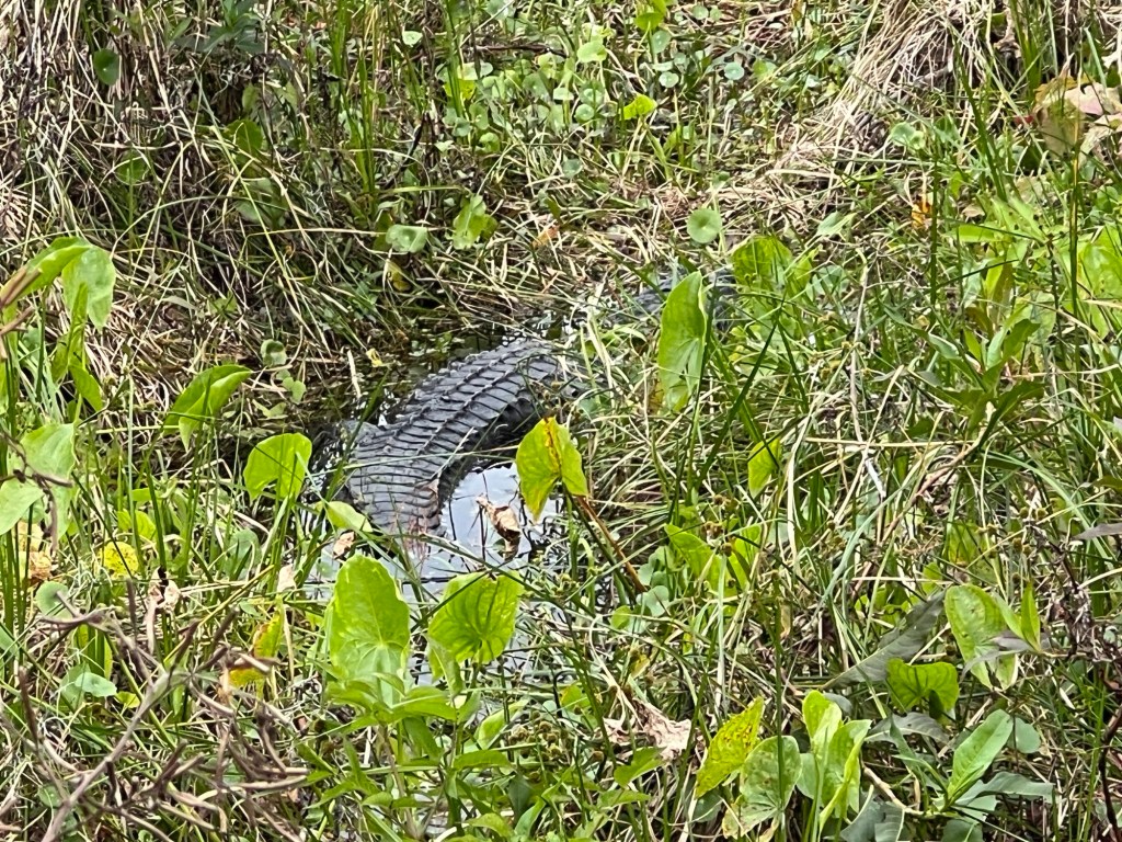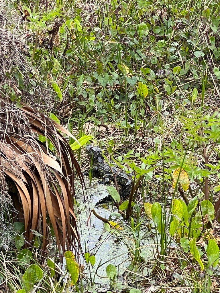 Als we deze trail lopen zouden we alligators verwachten. Vandaag hebben ze geen zin om zich te vertonen. Op den duur zien we er wel 1 en later nog een jonge alligator. Je moet heel goed kijken anders zou je ze zo voorbij lopen. We slenteren het pad af om meer wildlife te ontdekken. Het is hier zo mooi.