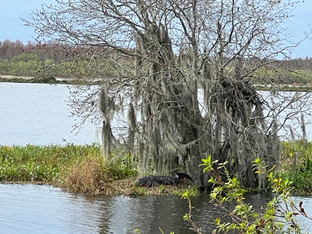 En dan komen we onze 3e en 4e alligator tegen vandaag. Gelukkig ver van ons vandaag. Een beetje inzoomen met de IPhone.